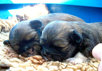 hier sind die Welpen 3 Stunden alt